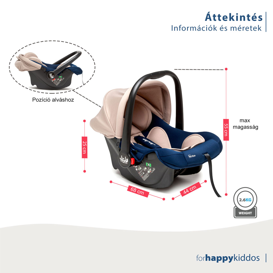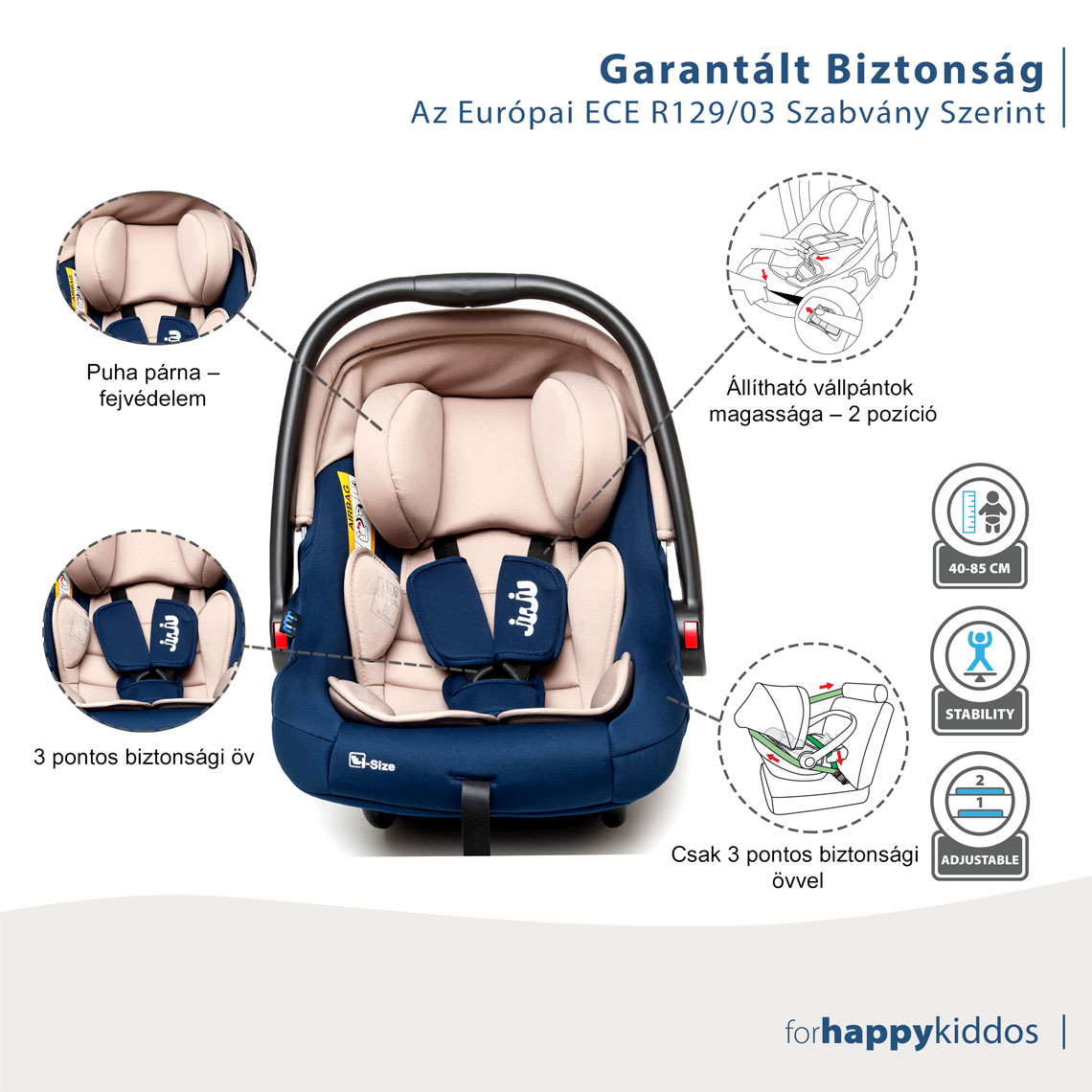 Juju Baby Boo i-Size autókosár, Bézs-Sötétkék