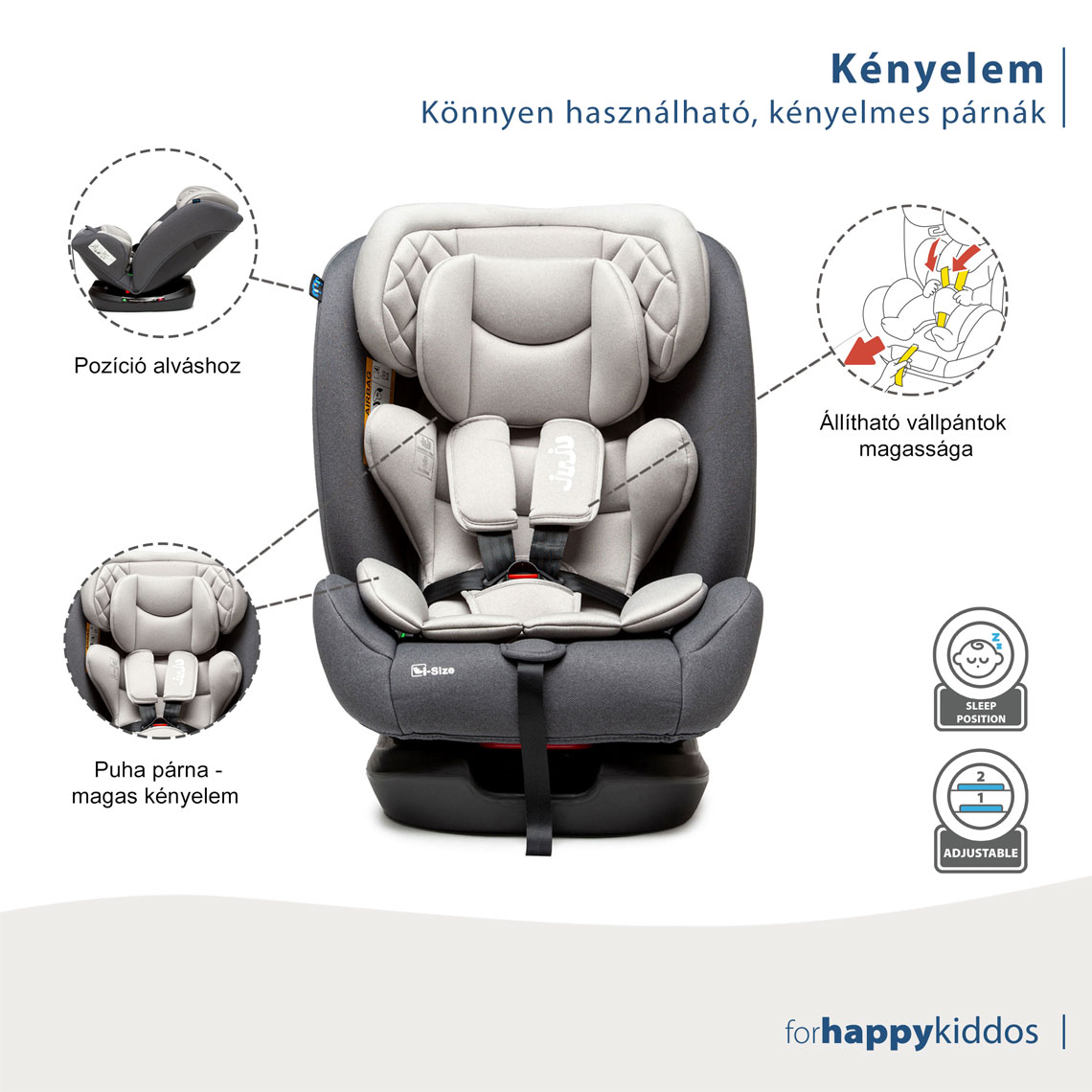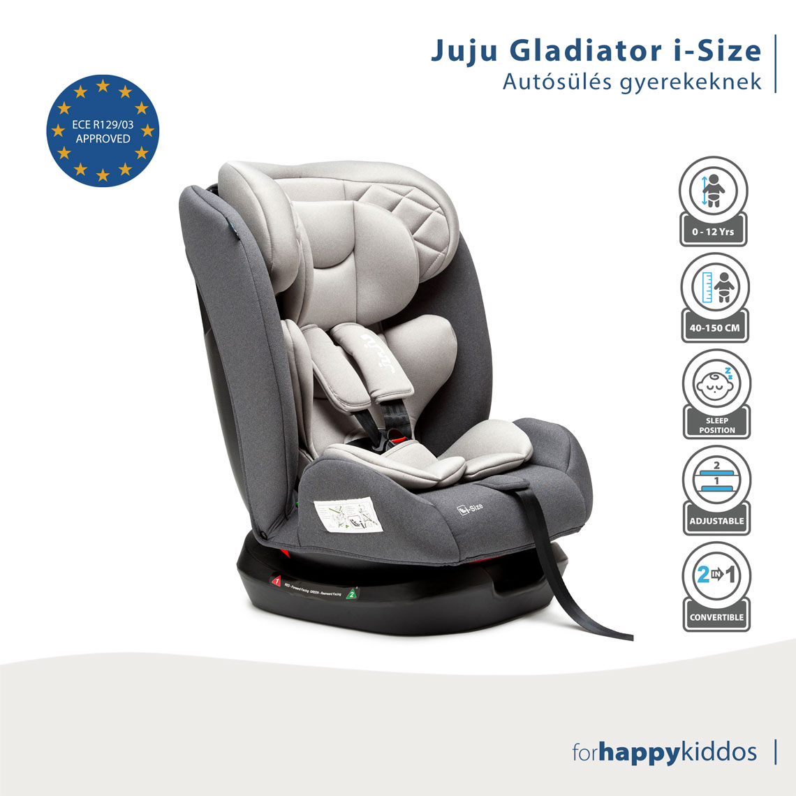 Gyermeke nevelésének minden szakasza tele van felfedezésekkel és örömökkel, és a sokoldalú Juju Gladiator i-Size autósülés tökéletes társ minden közös utazáshoz. Úgy tervezték, hogy együtt nőjön a kicsivel, ez az autósülés ideális gyermekek számára születéstől 12 éves korig, vagy 40 és 150 cm között.