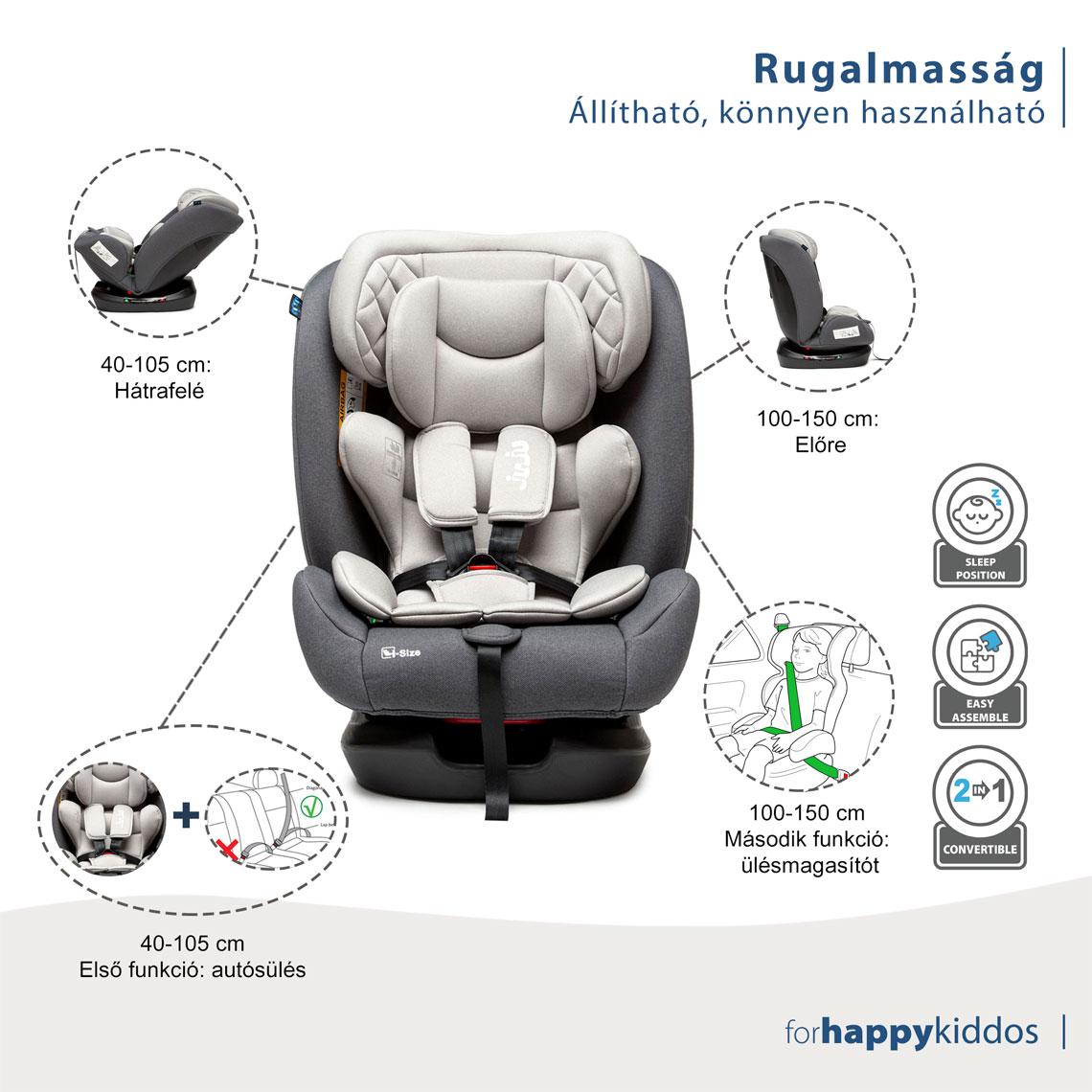 Okos és állítható kialakításának köszönhetően ez az ülés gyermekével együtt változik. Az állítható fejtámla és a kettős funkcionalitás lehetővé teszi, hogy praktikus és biztonságos autós ülésmagasítóként használják, miután a kicsi meghaladja a 100 cm-es magasságot.