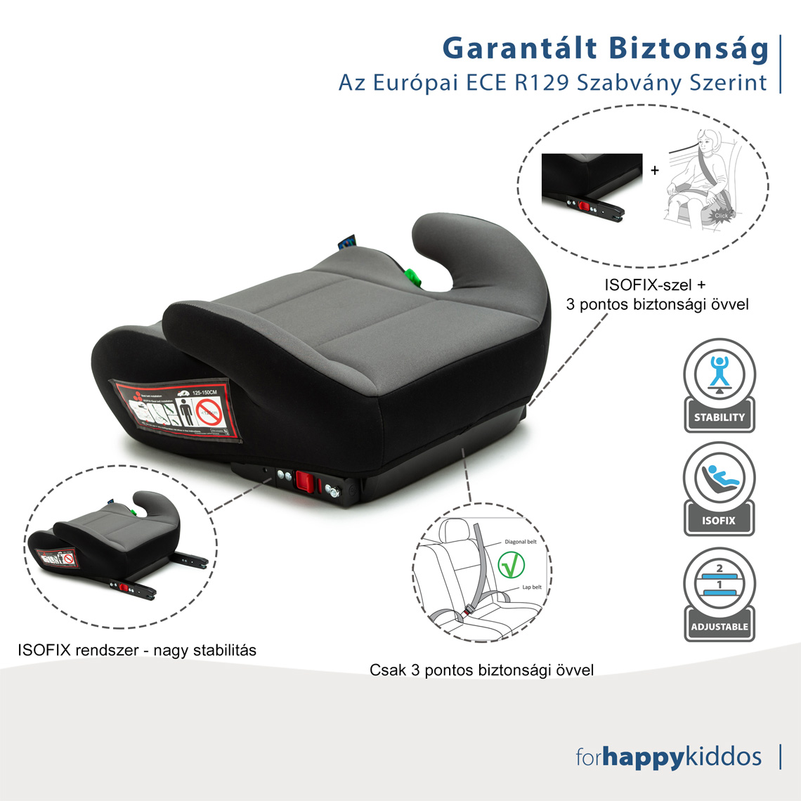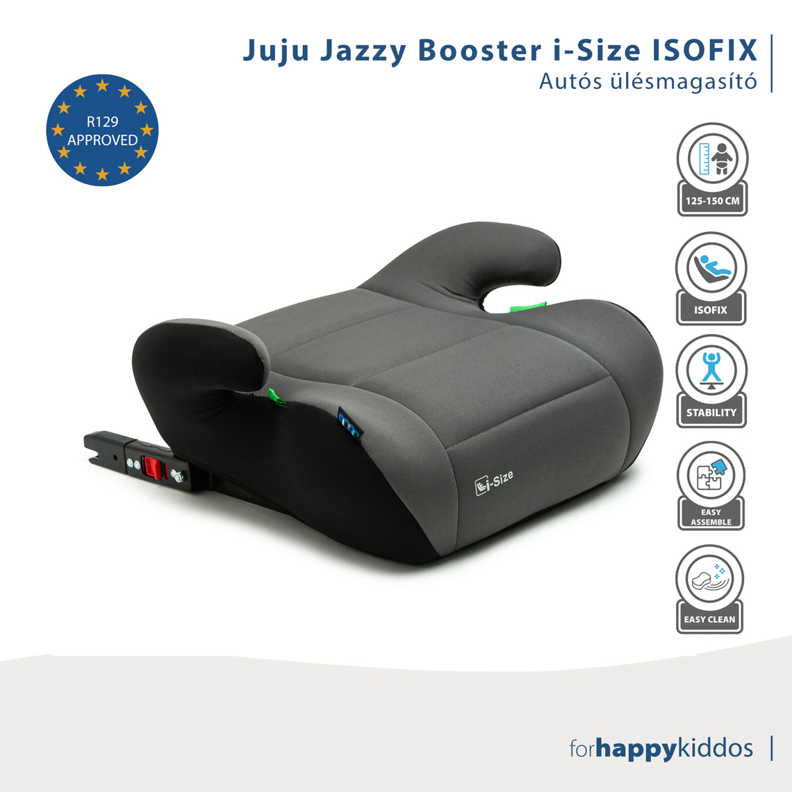 Juju Jazzy Booster i-Size ISOFIX autómagassitó, Fekete-Szürke